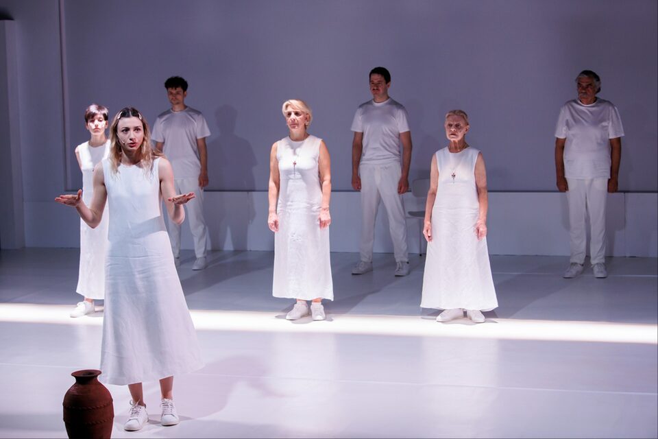 Un spectacol dur, despre supraviețuire, despre condiția umană, traume sociale, vieți distruse de violență, confruntarea cu ororile războiului, oameni care se transformă în fiare și oameni care se transformă în cântec mut.