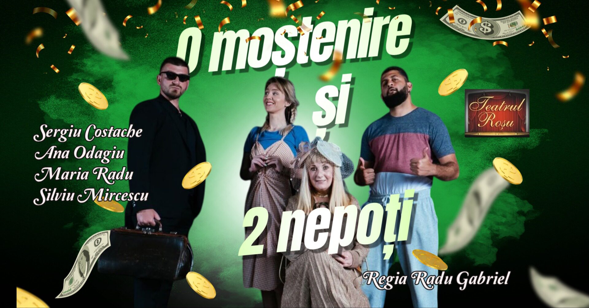 S-au trezit bogați peste noapte, însă o moștenire mereu generează conflicte. Ce iese, cu ce se alege fiecare si cine rezistă viu până la final, aflați venind la “O moștenire si doi nepoți”. O comedie cu Maria Radu, Ana Odagiu, Silviu Mircescu și Sergiu Costache.